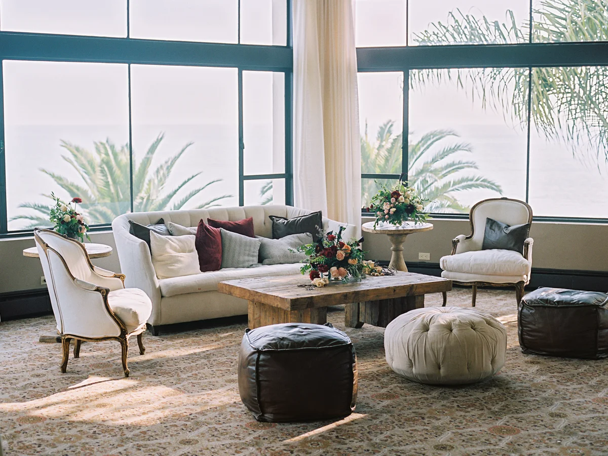 This space was all about simple luxury. The furniture was hand picked from Found Rentals with this in mind, and really created a comfortable, open environment. To add to the relaxed ambiance, we added subtle, seasonal blooms to elevate the space in a sophisticated way.