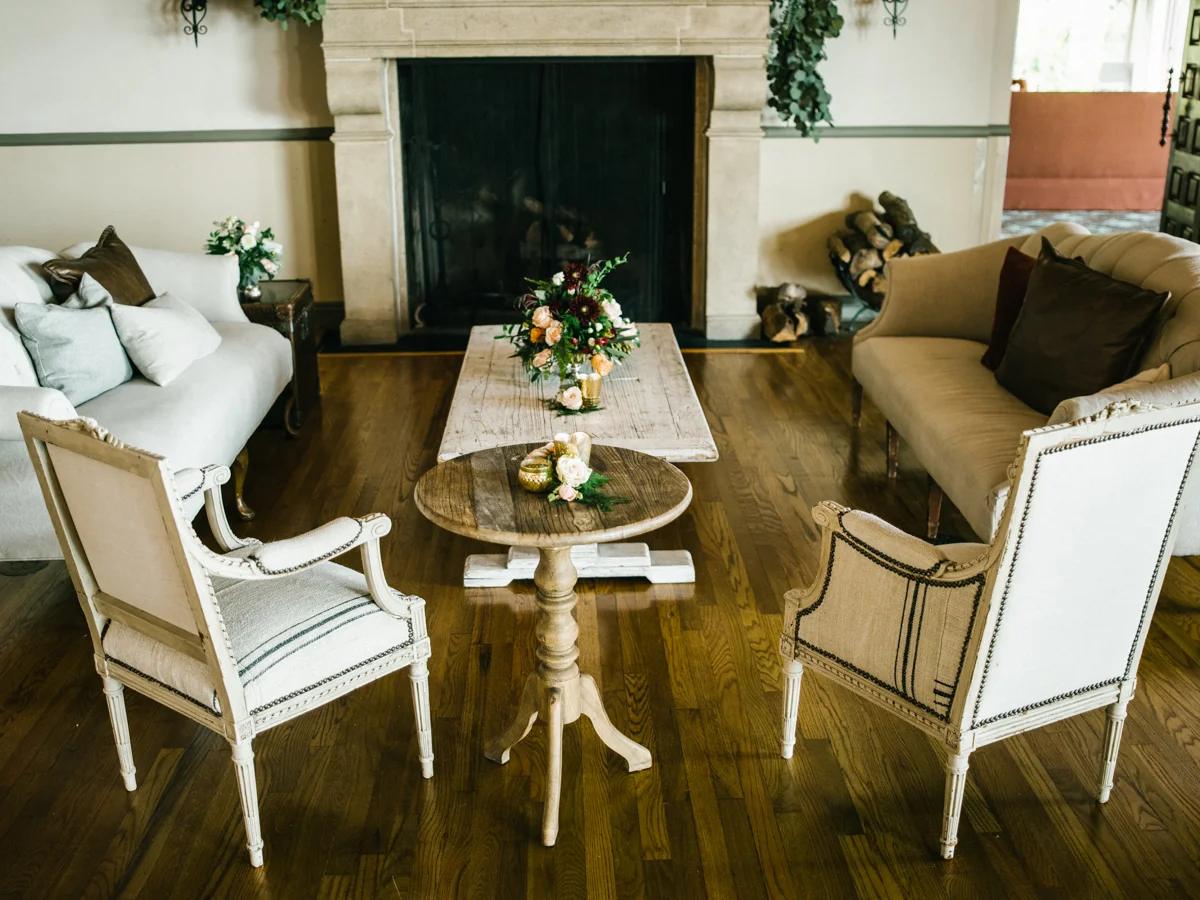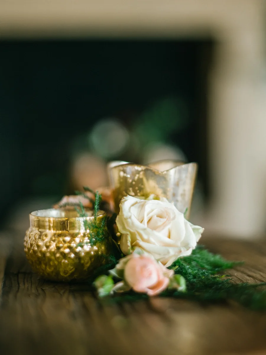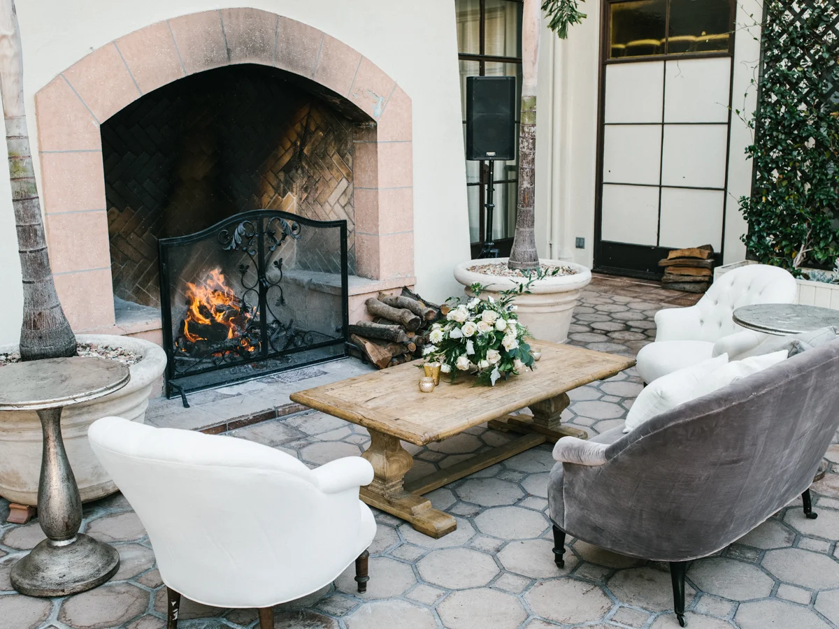 This fireplace made the environment all the more cozy. Adding soft blooms to match the light pink and cream color palette made this space truly come to life.